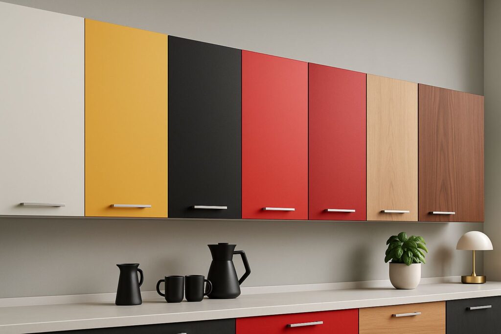 Laadukkaat sisustusteipit (matta, kiiltävä ja struktuurit kuten puu/kivi). Kulmat ja reunat viimeistellään siististi; vetimet ja saranat suojataan tai irrotetaan työn mukaan. Puhdistus ja tartuntapohjatyöt tehdään huolellisesti kestävän lopputuloksen varmistamiseksi.
